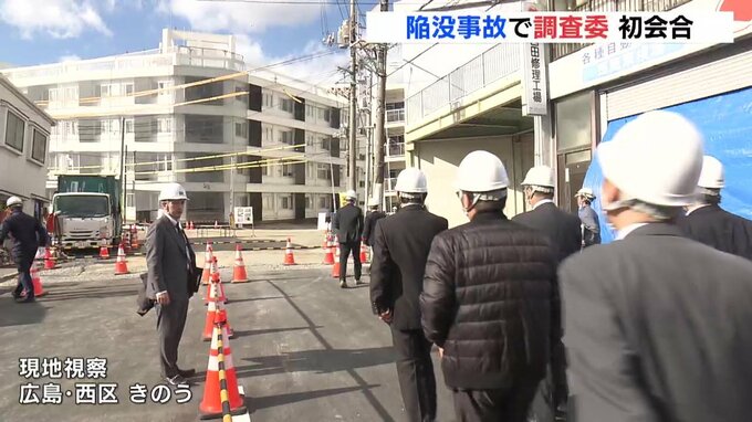有識者でつくる事故調査検討委員会は、広島市西区で9月に発生した陥没事故の現場を訪れ、市の職員などから説明を受けました。事故は、市が進めていた地下30メートルでの雨水管工事に伴い起きました。
