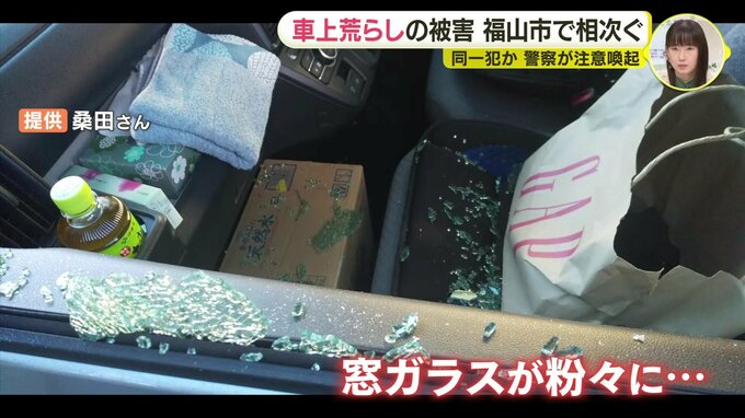 「窓ガラスが割れて散乱していましたね」。取材に応じてくれた桑田浩律さんです。11月29日、車上あらしの被害に遭いました。
