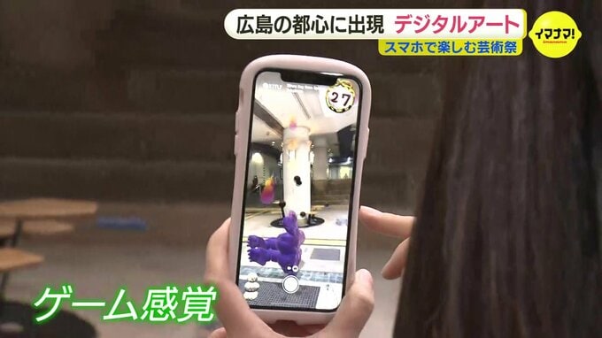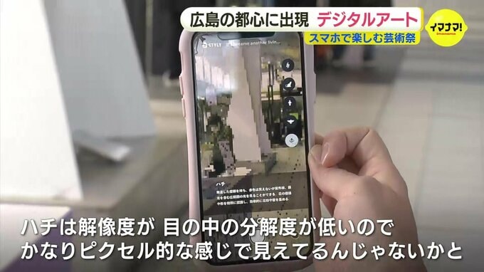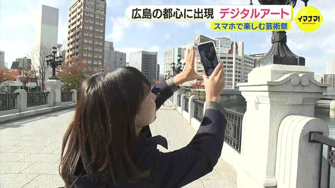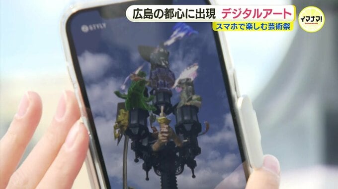 デジタルアートを現実の世界に重ね合わせた「ARアート」です。広島市中心部の14か所に、こうした作品が仕掛けられています。