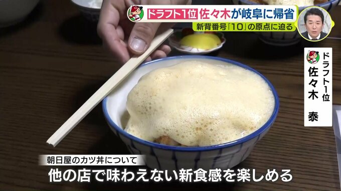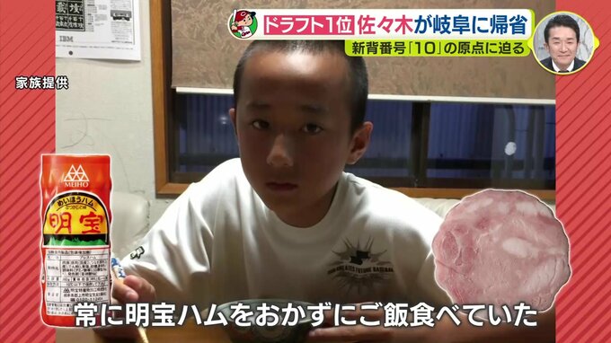このお店にも、佐々木の身体を作った岐阜名物の明宝ハム。応援してくれる地元の仲間との時間を過ごし、カープの新たな背番号「10」は英気を養いました。