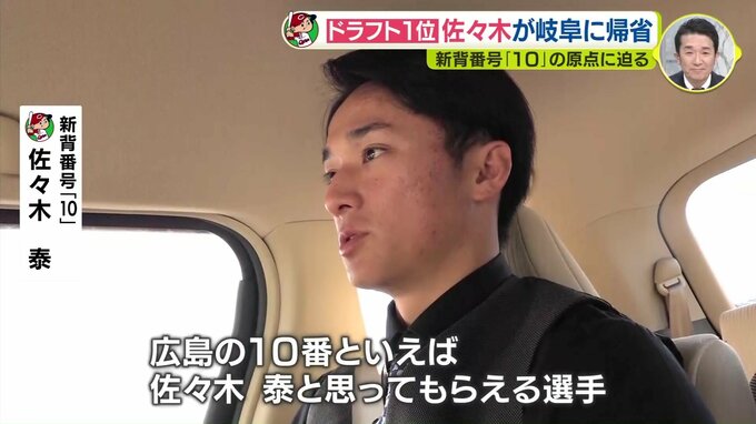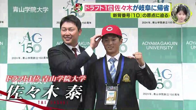 青山学院大学のキャプテンとして、史上5校目となる大学四冠に導いた、広島カープのドラフト1位、佐々木泰。期待の「背番号10」の地元・岐阜への帰省にカメラが密着しました。