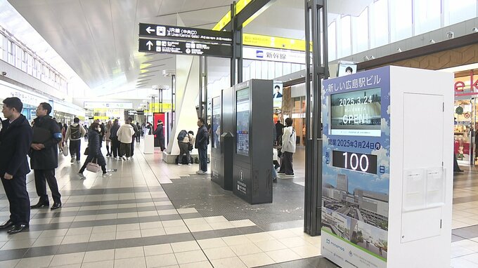 新しい広島駅ビルの開業は、来年3月24日です。除幕されたカウントダウンボードは、多くの人が行き交う自由通路に設置されました。