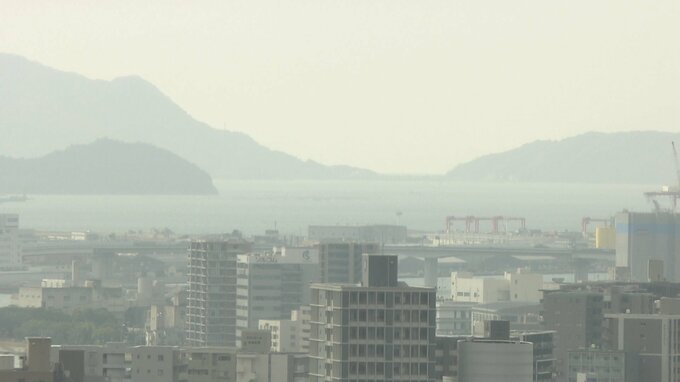 「コンセプトフロアのツインルームに入ってきました。瀬戸内海をイメージしたアートが飾られたこの部屋。およそ80メートルの高さから、瀬戸内海まで見えます」