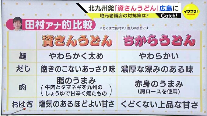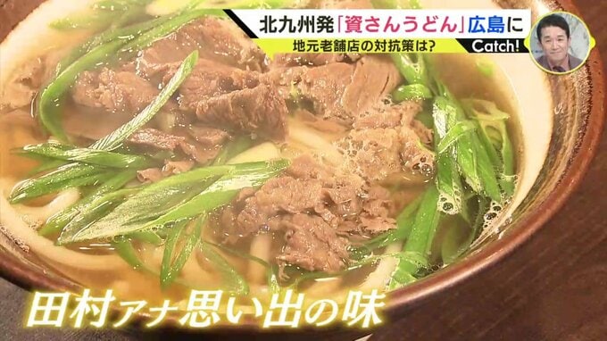 田村キャスターにとって「ちからのうどん」は、中学から高校にかけてテストが終わると自分へのごほうびに食べた思い出の味でもあります。
