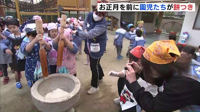 ことしも残すところあとわずか。広島県福山市の認定こども園では、正月を前に園児たちが「餅つき」を体験しました。