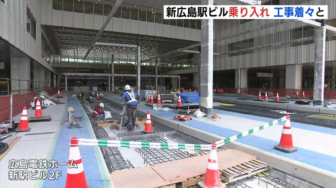 広島電鉄の路面電車の乗り入れにむけて、工事が着々とおこなわれていますが、このほど新しい路面電車の広島駅となる2階部分のアトリウムが公開されました。天井高い空間にいくつものホームが作られています。