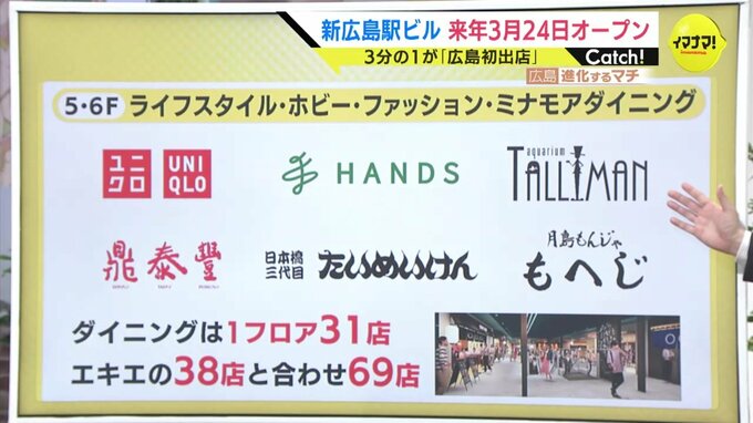 5階は日常のワクワクが見つかるフロアというコンセプト。6階はワンフロアに31店舗中四国最大級の店舗数となります。