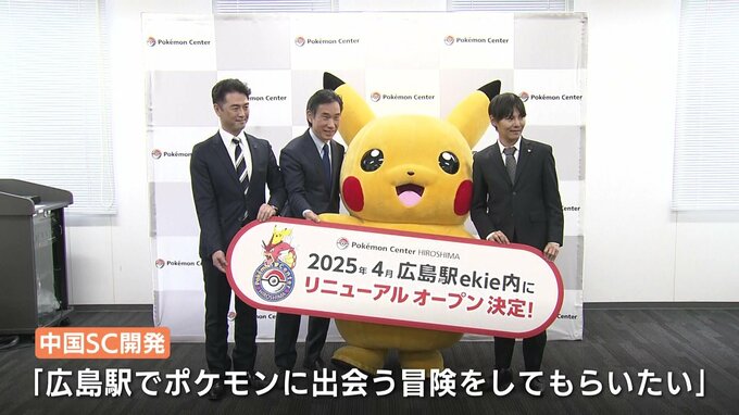 「広島駅でポケモンに出会う冒険を」 ”ポケモンセンターヒロシマ”がJR広島駅に今春移転 新駅ビル屋上にも”ギャラドスひろば”整備 広島駅周辺の新たなにぎわいへ 2025年1月15日(水) 17:45 国内 人気アニメポケットモンスターのオフィシャル商品などを扱う「ポケモンセンター」が、この春JR広島駅の商業施設に移転することが発表されました。新しい駅ビルにも特設広場が設置され、広島駅はポケモンたちでにぎ…