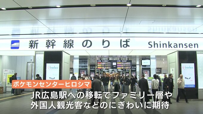 「ポケモンセンターの移転先は広島の陸の玄関口。広島駅はきょうも国内外の人が行き交っています。新幹線口を出てすぐ近く、あちらのシャッターの場所にポケモンセンターがやってきます」