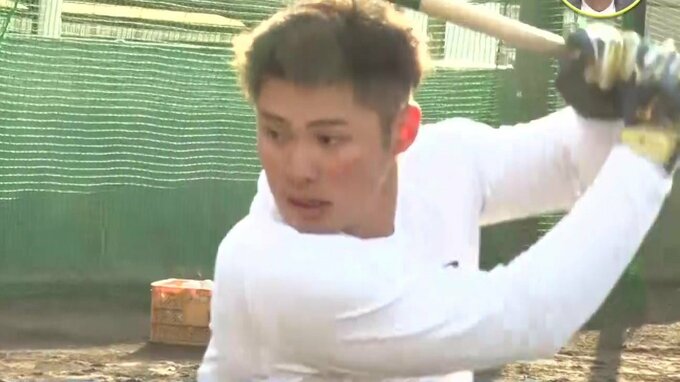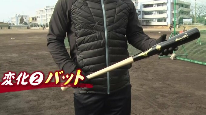 「(バットの真ん中を指し)この辺も細くして、なるべく重心をトップに。ヘッドの使い方をうまく使えばあまり力もいらないっていう。メチャメチャいい感じだなというのは思いますね。打球の角度がちょっと上がるようになったというか、そういうのを感じています。打てるぞっていう気持ちだけじゃなくて、ところどころ、一歩引いて、広く視野を持つというか、そういうのも大事だなというのはすごく感じました」