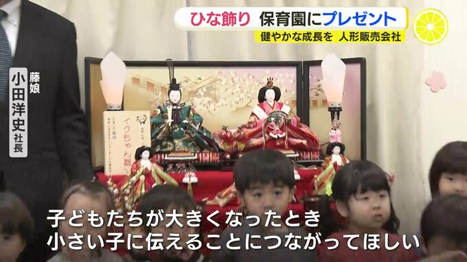 こどもたちの健やかな成長を願って、広島市の保育園にひな飾りがプレゼントされました。