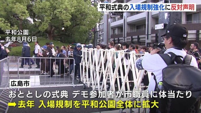「広島市の規制は過大」 平和記念式典の入場規制強化に反対 広島弁護士会が声明 2025年2月2日(日) 13:31 国内 2024年の平和記念式典で、広島市が入場規制を強化したことに反対して、広島弁護士会が声明を出しました。広島弁護士会 依田有樹恵 弁護士(平和・憲法問題対策委員会)「広島市の規制は過大であって憲法が保障す…