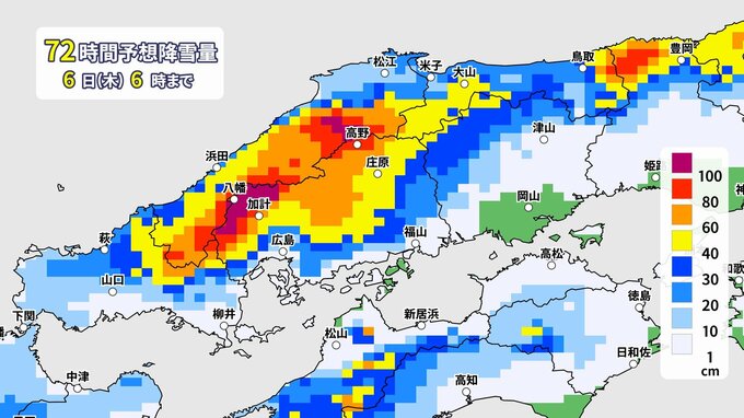 中国地方では4日明け方から6日頃にかけて山地を中心に大雪となる見込みです。