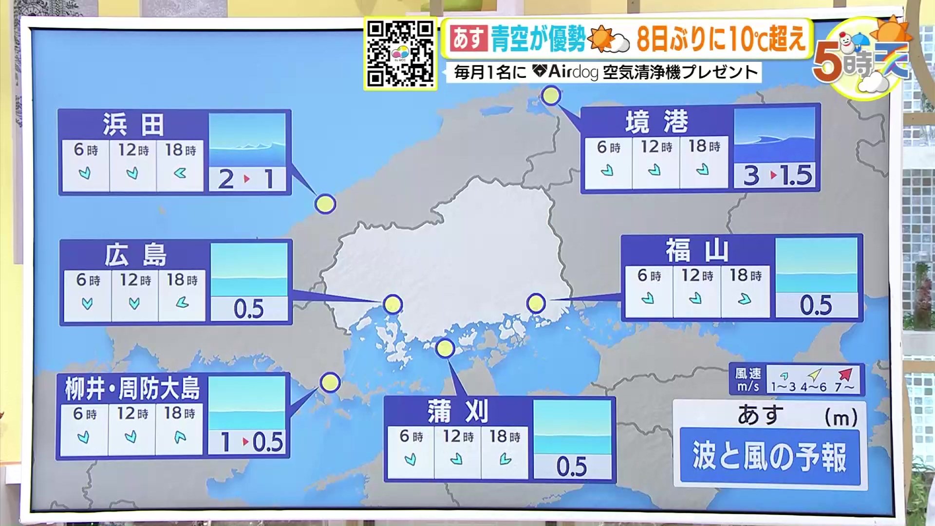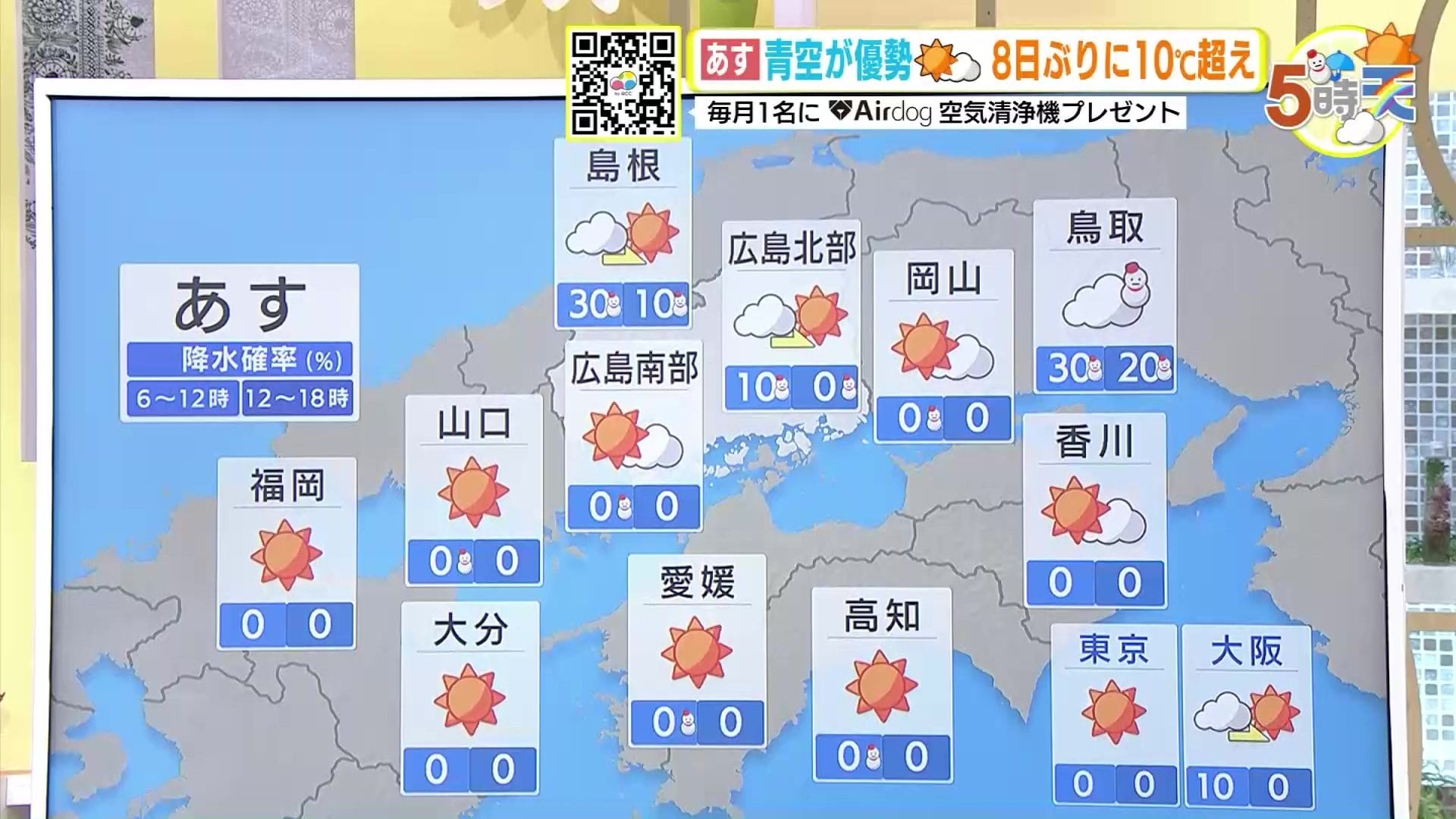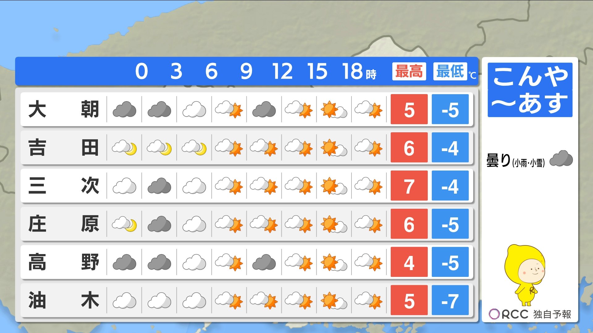 きょう10日(月)の広島県内は、寒波のピークは過ぎましたが、引き続き風が冷たく寒い一日となりました。特に朝晩の冷え込みは厳しく、最低気温は大朝で-8.6℃ 広島市中区で-1.1℃でした。
