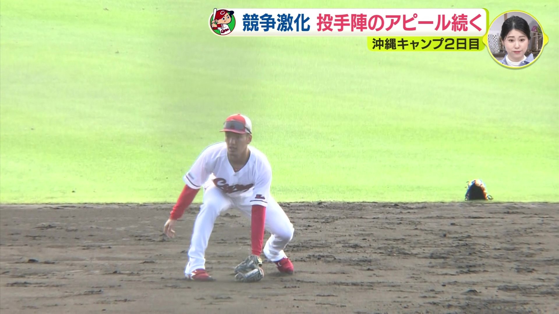 沖縄キャンプ2日目。今日は晴天に恵まれ、ようやくカープのフルメニューのキャンプが始まりました。練習は量だけではなく、基本的な練習から丁寧に臨んでいます。