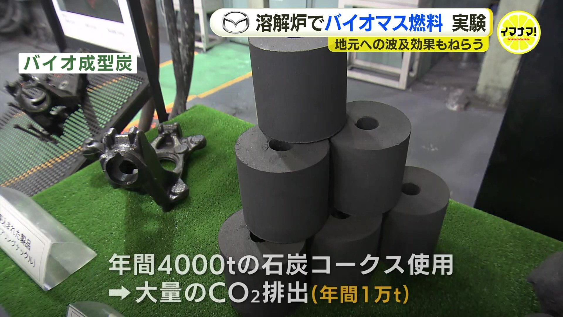 マツダは、2030年度にキュポラ溶解炉でCO2実質ゼロを目指し、2035年度には国内外の自社工場でのカーボンニュートラル化を計画しています。実現には年間5万4000トンのバイオ燃料が必要で、現時点では広島、島根、山口からの調達で、6割をカバー出来る見込みだということです。