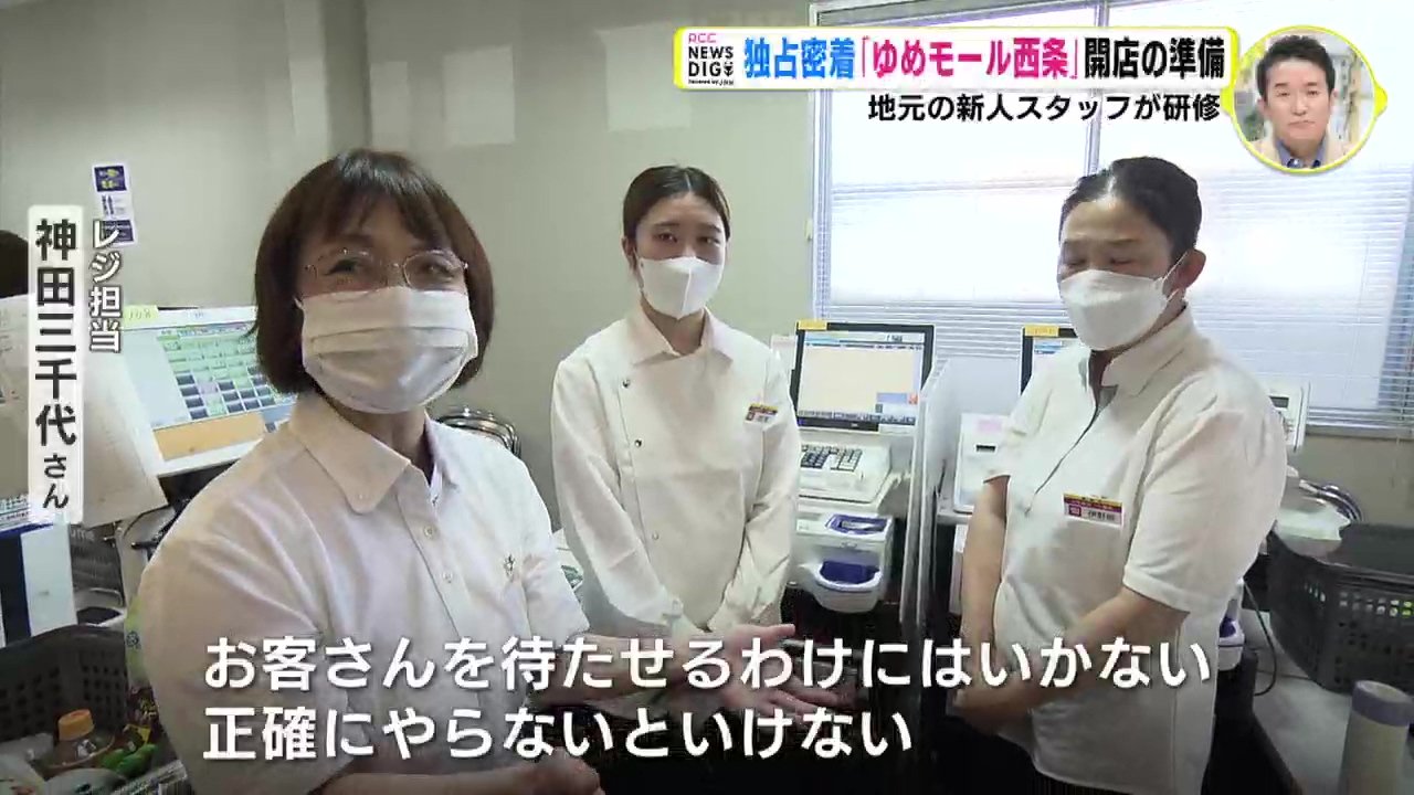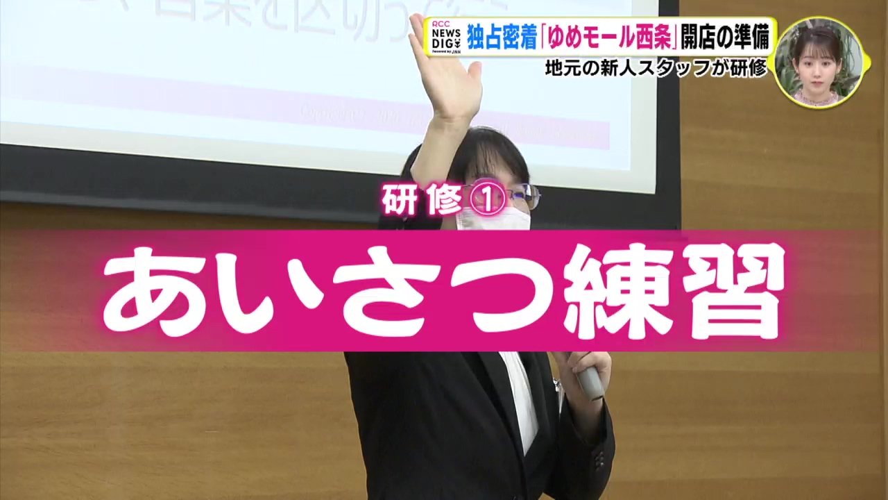 広島・東広島市に今月、オープンする「ゆめモール西条」。開店の準備に独占密着しています。地元・東広島市の人たちを中心にした新人スタッフが、研修を続けています。