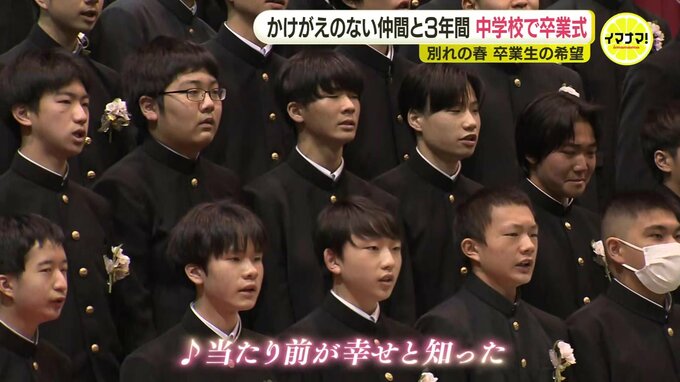 広島市立幟町中学校の卒業式には、3年生91人全員が出席。コロナ禍だった小学生の時とは違い、一人一人が名前を呼ばれて壇上で証書を受け取りました。