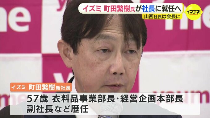 町田新社長は、57歳。事業部長として衣料品を収益の柱の一つに成長させるなどしたほか、経営企画本部長などを務めました。町田氏は、「満足度をあげるために、イズミグループにしかない商品を作り上げたい」と話しました。