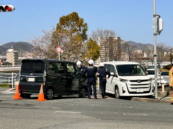 警察と消防によりますと、午後1時ごろ、運転手から「車3台の追突で車内に閉じ込めがある」と119番通報がありました。
