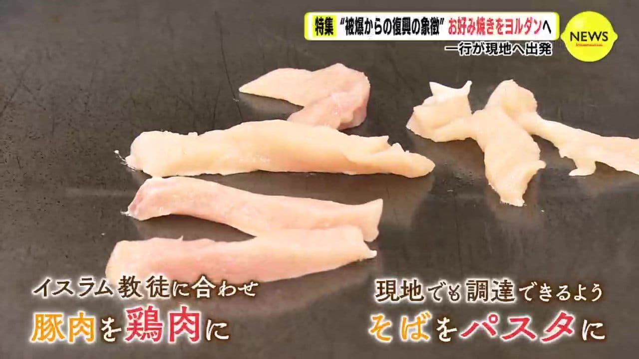 「お好み焼きをヨルダンの人にも長く愛される料理にしたい」―。豚肉は鶏肉に…、そばはパスタに…。市居さんは、出発直前まで試作を繰り返しました。