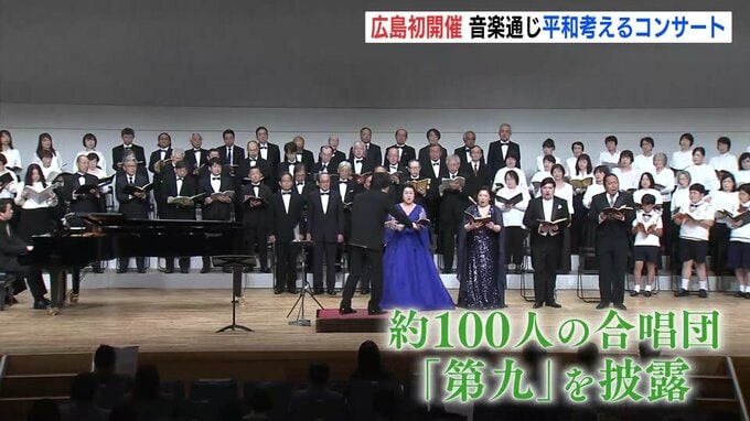 広島では初開催となる今回は約250人の観客が会場に詰めかけました。コンサートでは広島市などから集まった約100人の合唱団がベートーヴェンの交響曲「第九」を披露。伊藤さんが歌詞を訳しながら、ベートーヴェンが第九に込めた思いなどを解説しました。