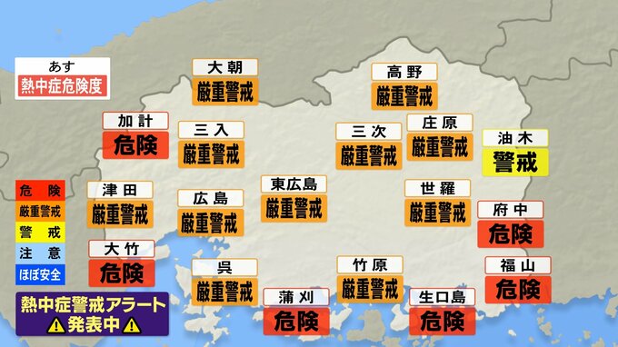 広島市中区では、きょうで10日連続の熱帯夜となりましたが、あすの朝にかけても熱帯夜となる見込みです。引き続き寝苦しくなるので、エアコンをはやめに使って涼しくしてお休みください。あすも引き続き危険な暑さが続きます。熱中症に厳重に警戒してください。しばらく雲が優勢の天気で、週末から来週前半にかけて、低気圧が通過するため雨が降る時間がある見込みです。連日大気の状態が不安定のため、局地的な雷雨に注意が必要です。引き続き危険な暑さに警戒しながらお過ごしください。