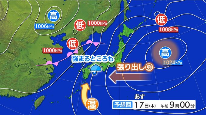 17日(木)午後は広範囲で雨 雨脚が強まる所も 大きめの傘の出番