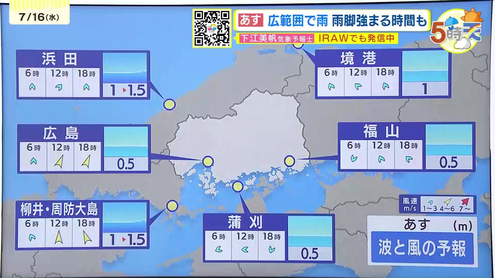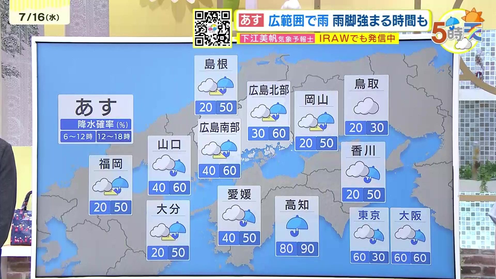 南部では夜間の気温が高く、広島市中区はあすも熱帯夜となる見込みです。夜間もエアコンを使用していただき、熱中症に注意してください。日中の気温は、きょうより2℃~3℃ほど低くなりますが、雨で湿度が高くかなり蒸し暑くなるでしょう。