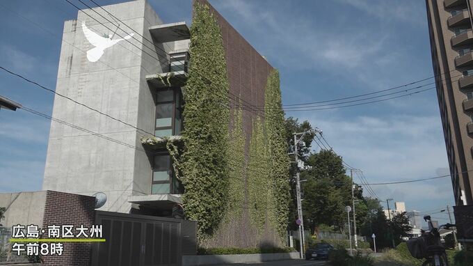 「カープの若手1軍選手が暮らす南区の大州寮です。爆心地からおよそ4キロのこの場所の建物には平和への願いが込められています」