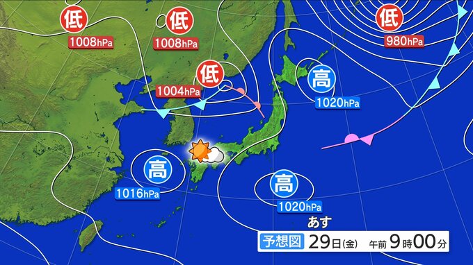 29日(金)おおむね晴れて強烈な日差し 暑さ加速し危険な暑さに 熱中症警戒