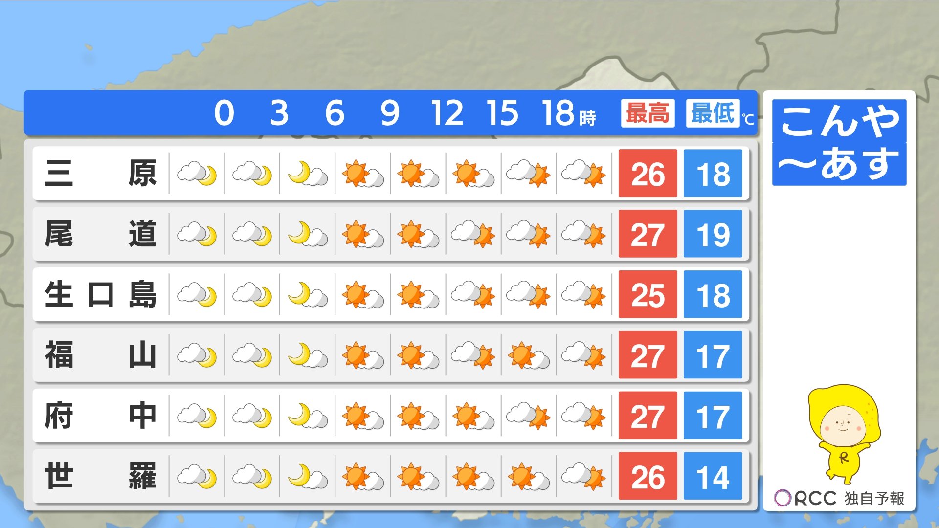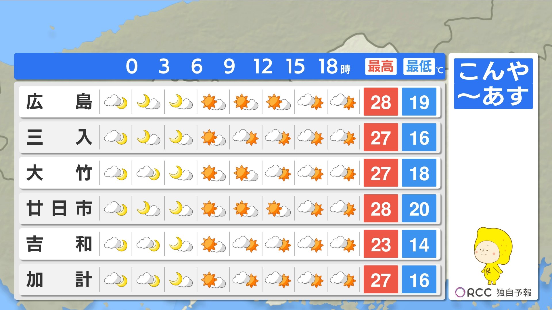 きょう29日(月)の広島県内は、未明から明け方にかけて強雨時間帯がありましたが、その後天気は回復し、各地で日差しが届きました。最高気温は、福山で30.0℃を記録しましたが、その他の地点では30℃を下回り、北風が吹くと過ごしやすさも感じられました。