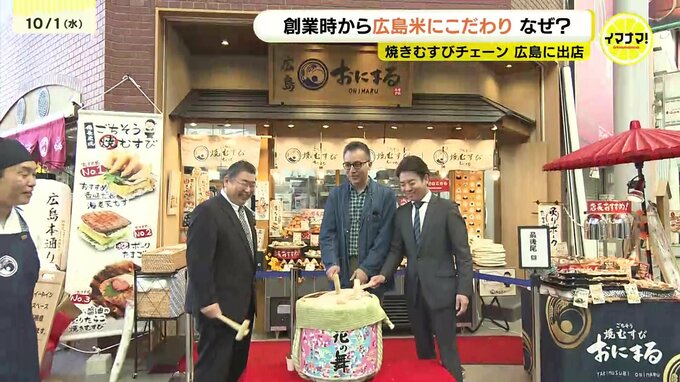 国内外で20店舗あまりを展開する焼きむすびチェーンの広島店が、1日オープンしました。チェーン店の特徴は3年前の創業時から広島産のコメを使っていることです。その広島米へのこだわりに注目しました。