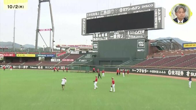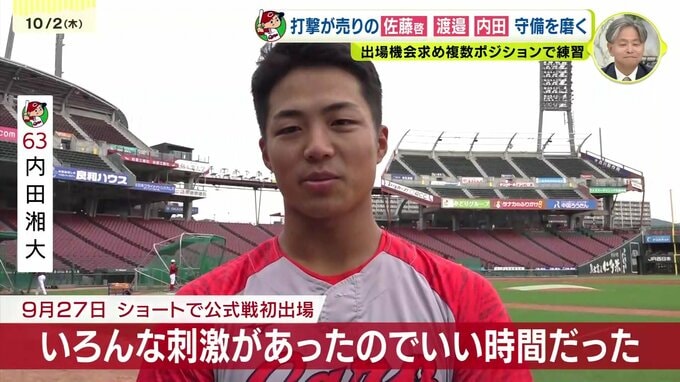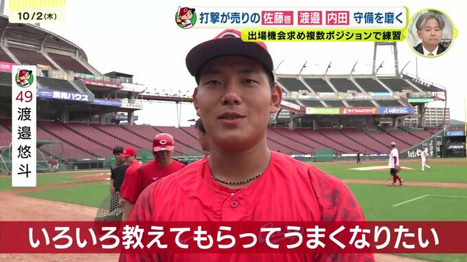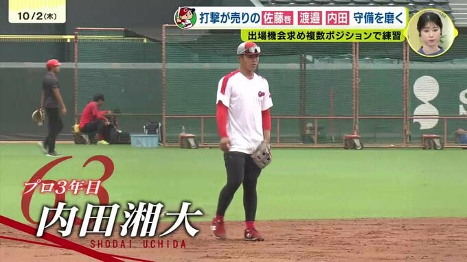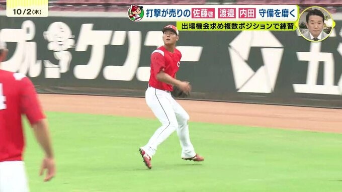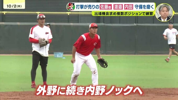 マツダスタジアムではさらなる出場機会を求めて打撃が売りの選手たちが、複数ポジションで守備を磨いていました。