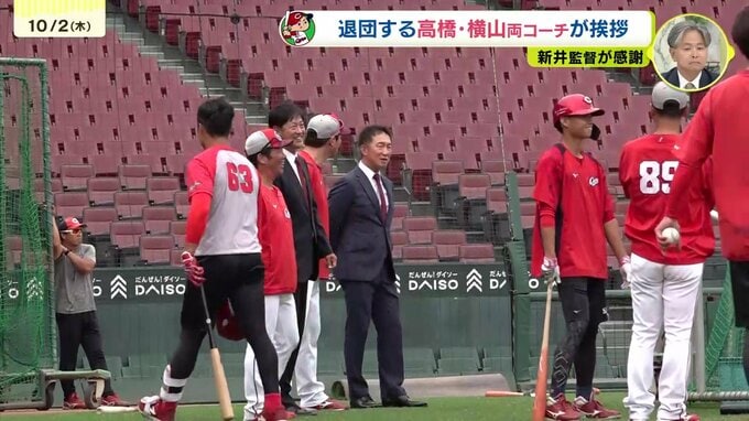 マツダスタジアムには退団が決まった高橋建、横山竜士両2軍投手コーチが挨拶に訪れました。