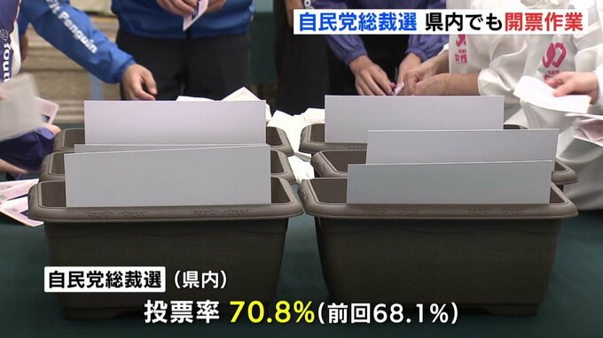 県内では党員など2万2228人に投票用紙が発送されています。今回の投票率は70.8%で、石破総理が選ばれた去年の68.1%をわずかに上回っています。