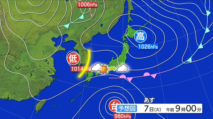 7日(火)午後はだんだんと雲が主役に 湿度が高めで蒸し暑い