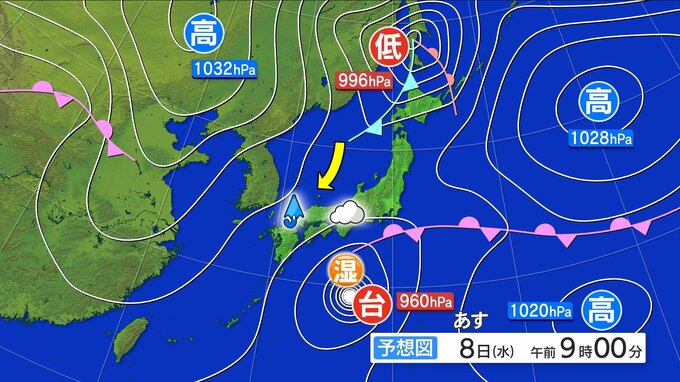8日(水)変わりやすい空模様 曇天だが薄日も 急なにわか雨の可能性 一日蒸し暑い