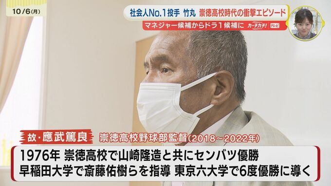 竹丸投手が2年生の夏、應武篤良さんが母校の監督に就任したことで、選手としての未来が開けたのです。