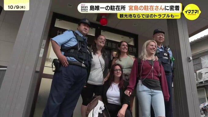 宮島唯一の駐在さんは外国人にも大人気。記念写真を撮ってもらおうと列ができていました。