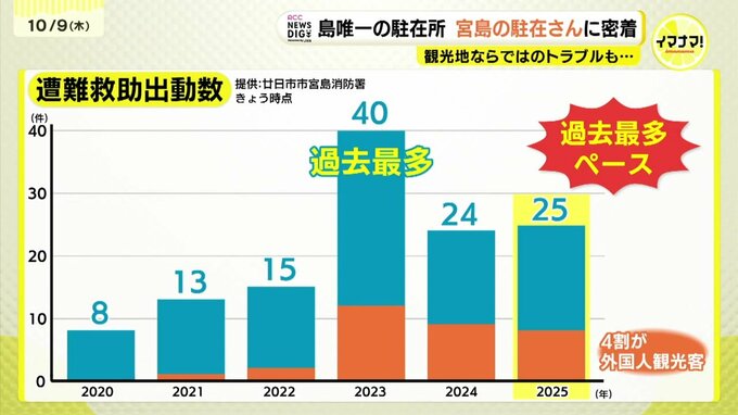 去年1年間の遭難救助出動は24件。しかし、ことしはすでに9日までで25件となっており、過去最多に迫る勢いです。その内4割は外国人観光客が占めています。