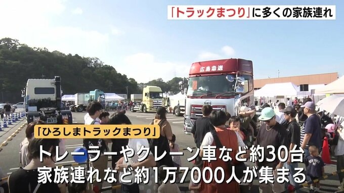 トレーラーやクレーン車などおよそ30台が集まった「ひろしまトラックまつり」には、家族連れなどおよそ1万7000人が参加しました。