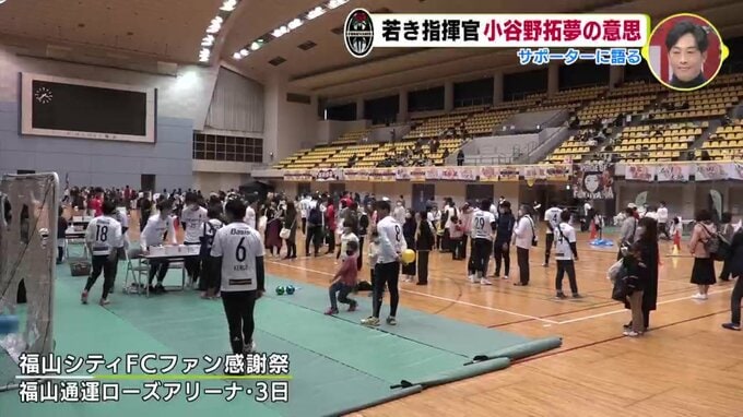 3日に開かれた福山シティFCのファン感謝祭。選手たちも、サポーターと笑顔で触れ合っていました。