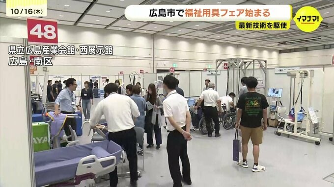 県立広島産業会館で始まった「福祉用具フェア」には、90のメーカーが、最新技術を駆使した福祉用具を出展しています。