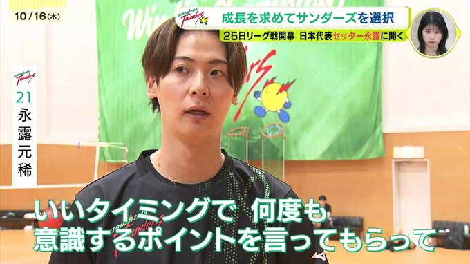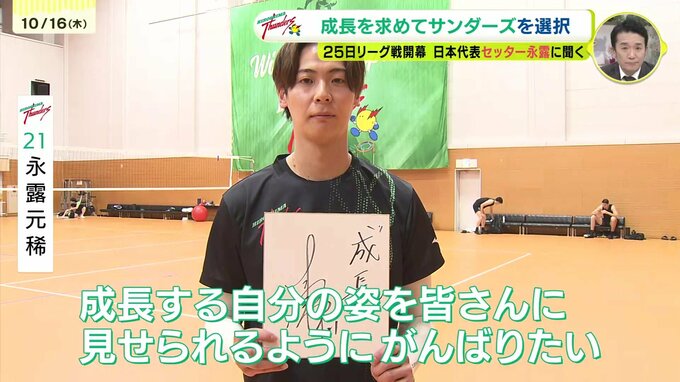 昨シーズンはレギュラーシーズン1位の大阪ブルテオンで正セッターを務め、日本代表にも選ばれている永露ですが、しきりに口にするのは成長という言葉。