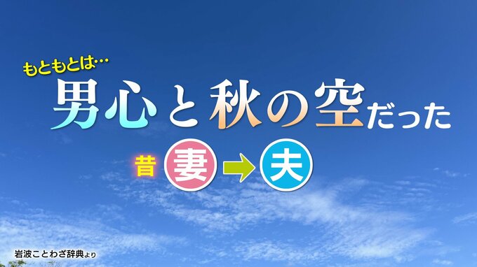 諸説ありますが、岩波ことわざ辞典によりますと、このフレーズは元々「男心と秋の空」だったそうです。以前は、女性側から男性の心の移り変わりやすさを秋の空に例えた語句でしたが、それが時代の変化とともに男性側から女性の心の移り変わりやすさを例えた語句として使われるようになったといわれています。