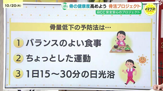 カルシウムだけでなくその吸収や沈着を助けるビタミンD・Kや、骨の材料になるタンパク質などバランスよく食べることが大切。