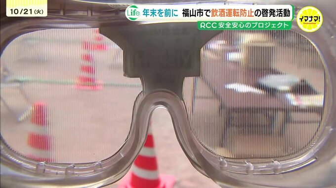 飲酒は運転にどう悪影響を及ぼすのか? それを疑似体験できるのがこちら、「酒酔い体験ゴーグル」です。記者が着けてみました。
