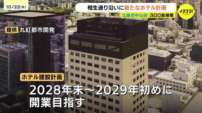 新たなホテル計画は、広島市中区銀山町の相生通りです。開発する丸紅都市開発によると、計画では地上20階建て客室は300室規模で延べ床面積は、1万3000平方メートル。