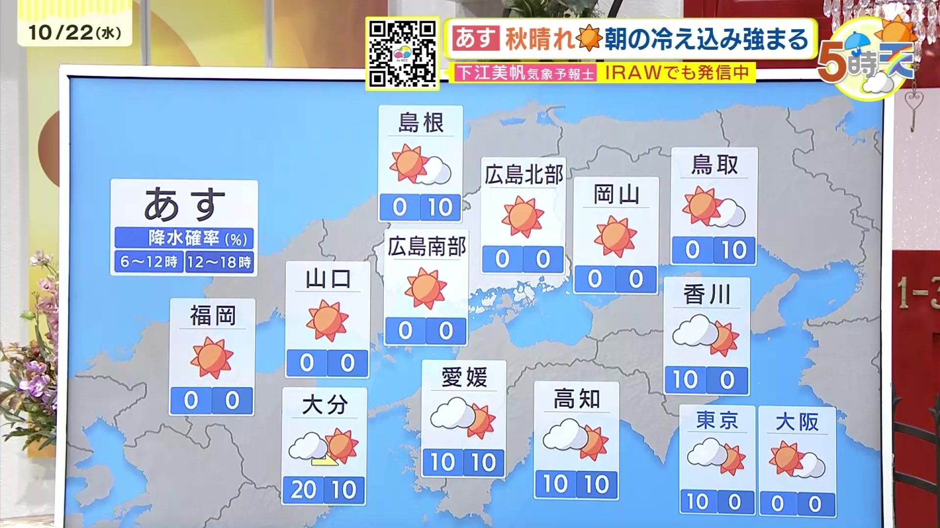 きょう22日(水)の広島県内は、どんより雲が広がりやすい一日でした。気温は県内全地点で今季一番低い気温になり、北風が吹いてかなり肌寒い一日になりました。最高気温は、各地で11月上旬~中旬並の肌寒さとなりました。